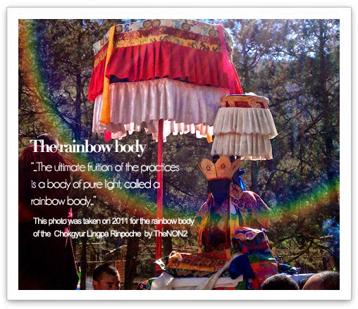 "The rainbow body,' a phenomenon in which the corpses of highly developed spiritual individuals reputedly vanish within days of death." http://livedeepnow.com/christian-buddhist-explorations-the-rainbow-body